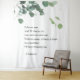 Wedding backdrop with customisable verse and watercolor eucalyptus decoration.