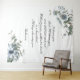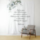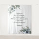 Wedding backdrop with customisable verse and blue native floral decoration.