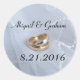 Don't lick envelopes, seal them with your very own customised sticker. Use these stickers to seal your invitations, thank you notes, or gifts. It features an image of a pair of golden wedding bands on a veil.