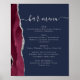 Wedding Bar Menu Burgundy Silver Agate Navy Blue Poster