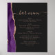 Wedding Bar Menu Purple Rose Gold Agate Dark Poster