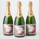 Wedding Beautiful Red Flowers Leaves Greenery Sparkling Wine Label