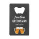 This custom beer cheers bottle opener is the perfect favour for the best man in your wedding, either for your bachelor party or for your wedding day. Personalise with the name and date of your choice. The background colour of the product can be changed to fit your preference.