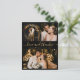 Modern, Elegant Hand Lettered Black and Gold Wedding Photo Collage Thank You Postard. Minimalist wedding thank you card template featuring three photo on the front and one photo on the back. With the text "Love and thanks" in a swirly hand lettered typography script font with swashes in gold colour on black background. Little heart between the names. Personalise custom name and thank you message. If you prefer to handwrite your note, just delete the sample text to make more space. If You need help or matching item, please contact me!