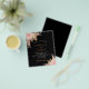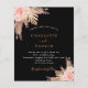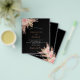 For a modern boho style wedding. A stylish black background. Decorated with rose gold and pink florals, roses and pampas grass. Personalize and add names and details.