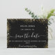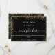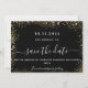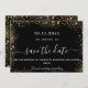 A modern and elegant Save the Date for a wedding. A black background decorated with faux gold glitter. sparkles. Personalise and add a date and names. The text: Save the Date is written with a large trendy hand lettered style script.