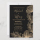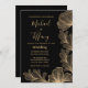 Celebrate your upcoming wedding with a gold and black romantic and elegant invitation with the look of filigree flowers. This combination is timeless and classic, a top trend and sophisticated and has a soft and modern style. The invitation is easy to personalise for your wedding. This design was graphically created with a gold metallic look and contains no metal or glitter or raised areas.