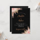 For a modern boho style wedding. A stylish black background. Decorated with rose gold and pink florals, roses and pampas grass. Personalize and add names and details.