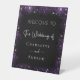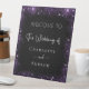 Wedding black purple sparkles welcome pedestal sign