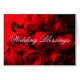 A beautiful crimson red rose bouquet is the focus of this wedding greeting card. The white text on the front reads "Wedding Blessings", and the inside contains a lovely message in rich, red text.
