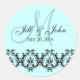Wedding Blue Monogram Save the Date Classic Round Sticker
