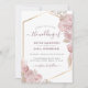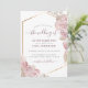 Budget Blush Pink and Creme Roses with Elegant Golden frame Wedding Invitations - features dusty pink handwritten and elegant black script with blush pink roses and creme beige dry leaves in elegant golden geometric frame. The reverse side of this romantic Wedding invitation is dusty pink.