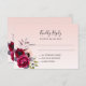 An elegant, romantic RSVP card for a wedding with templates for reply by date and names. A soft rose gold gradient, ombre background. Decorated with dark purple and burgundy and rose pink watercolored flowers. The title Kindly Reply is written with a modern hand lettered style script.