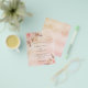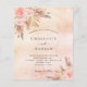 For a modern boho style wedding. A rose gold and blush pink faux metallic looking background. Decorated with rose gold and pink florals, roses and pampas grass. Personalize and add names and details.