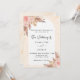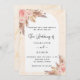For a modern boho style wedding. An arch frame and rose gold marble print as background. Decorated with rose gold and pink florals, roses and pampas grass. Personalize and add names and details.