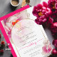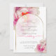 Wedding INVITATION | Modern text fits nicely inside this beautiful sheer white gold edged arch frame that shows the underlying fantasy bright fuchsia scarlet peony flower edged in gold - original artwork © by WhimsicalArtwork™.