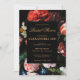 Wedding Bridal Shower Invitation Black Floral. All copper coloured text is fully customisable. The back of the card is set in a dark red background but you can chose any colour you like. Our ALEXANDRIA wedding suite collection is filled with florals on both black and red backgrounds all using a copper coloured text. Moody, elegant and modern.