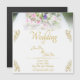 Wedding invitation - bride with colourful wedding bouquet of roses.