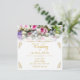 Wedding invitation - bride with colourful wedding bouquet of roses.