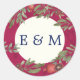 Wedding Burgundy Botanical Greenery Monogram Classic Round Sticker