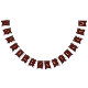 The burgundy red flags have vintage gold decorations on the upper border. The letters that form the names of bride and groom are golden caps. The default names are "Danielle & William". There are 16 flags in total, fit, for example for an 8 letters name and a 7 letters name united by "&".
