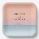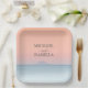 Wedding by the sea under peachy sky sunset paper plate