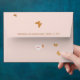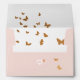 This design is of the Wedding Cake Butterflies Wedding theme that features an invitation with golden butterflies fluttering and landing on a sweet creamy wedding cake on a powder pink with a deep red accent colour. Click the collection link to view all of the products in this theme.