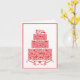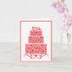 Wedding greeting card is shown with a fancy red cake graphic print.