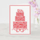Wedding greeting card is shown with a fancy red cake graphic print.