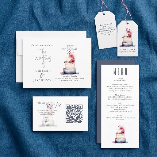 Watercolor wedding cake wedding stationeryDesigned by Andy O'Dell