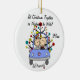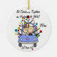 A pretty round ceramic keepsake ornament features a stick figure husband and wife in wedding car having their first Christmas together as a married couple! Easily add your own text and date to current year on this cute stick figure couple with Christmas tree design ornament. Makes a great gift idea!