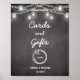 Wedding Cards Gifts Sign Poster banner in Black White with Mason Jar, String Lights on Blackboard/Chalkboard Background.