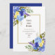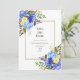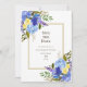Your guests will love this classic blue, watercolor beauty. From the Carolina Blue Collection, this summer blue, floral edge bouquets sits on the upper left and lower right corners, and ties together with a double gold frame.