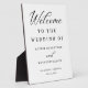 Wedding Celebration Modern Script Welcome Plaque features the elegant calligraphy script "Welcome to the wedding of" with your names, location and date below. Perfect to welcome your guests to your wedding. View coordinating products at www.zazzle.com/store/evcostudio