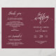 This is the foldable wedding ceremony program card, in elegance script in Burgundy colour themed.