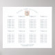A modern design for your guests to find their seats with a motif of boho wedding chairs at the top and curved typography around it for the header with eight tables for up to 80 guests. Easily personalise with your guests' names and you can change the table numbers to your own words if preferred for your theme. If you wish to change font styles and colors you can do so via the customise further option.