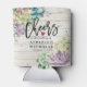 Wedding Cheers to Love Wedding Shower Can Cooler / koozies Templates - Elegant lovely Watercolor Succulent Plants on White Rustic Wood Background.