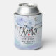 Wedding Cheers to Love Can Cooler / koozies Templates - Elegant Light Blue Watercolor Natural Boho Floral Feathers and Handwritten Script.
