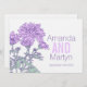 Floral chrysanthemum graphic drawing wedding invitation. Edit this invitation with your own names and invitation words. Perfect for a late summer / early autumn weddings, or a purple, green and white themed wedding garden floral themed wedding, engagement, or anniversary. Unique drawing and graphic art and design by Sarah Trett. www.sarahtrett.com for www.mylittleedenweddings.com