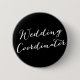 This simple minimalist pin button design features a modern chic white 'Wedding Coordinator' classic calligraphy font script on a plain black background. Great for any wedding rehearsal, ceremony, wedding rehearsal, bachelorette and bridal party.