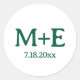 Wedding Couple Green Initials & Date Classic Round Sticker