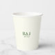 Create wedding paper cups featuring your monograms! Green with a very light shade of yellow. Simple and modern appeal. Customise the front and back with your desired couple monogram and wedding date. Part of the Romantic Tree Design collection. Use the template to create your own wedding monogram paper cups.