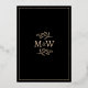 Simple wedding couple monogram initials with botanical line art leaf details in gold, silver or rose gold foil on a black background for a beautiful and unique luxurious modern minimalist wedding invitation. Change any of the text to personalise.