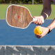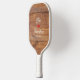The perfect paddle for the pickleball loving couple. Great for some wedding pickleball - reception, outdoor wedding, bachelorette/bachelor parties and more. Design features the couples name in a fun script font, heart and wedding date set against a dark wood background. This paddle makes a really special gift for the wedding couple.