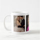 Wedding mug featuring your custom photos on a simple background (you can choose your favourite colour in the advanced editor). The "love" text is a script style, which you can customise. A lovely gift for newly weds or mum of the bride or groom, as well as to celebrate an anniversary.