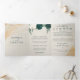 Wedding Cream All in one set Emerald Green Roses Tri-Fold Invitation