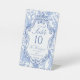 Delft blue floral table number card, designed in a refined blend of chinoiserie and French toile de Jouy style. The soft botanical illustrations frame an arched layout featuring an elegant wedding crest monogram, perfect for couples who love vintage, historic, and European-inspired aesthetics. Classic script typography pairs beautifully with the ceramic-blue palette, making this design an effortless nod to the tradition of “something blue.” Fully customizable with your names, wedding crest and table number, it’s an exquisite choice for any romantic or sophisticated wedding theme.