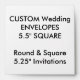 Wedding Custom Square Envelopes, 5.5" square envelope for 5.25" square & round invitations. FELT: 100lb text-weight felt paper with an embossed finish that feels like a fine art paper. An elegant touch of class.
