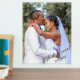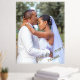 Elegant wedding photo foil print, with the large custom wedding photo as the focal point. A thin gold foil frame, surrounds the picture. Personalise the custom text and photo for a special keepsake of your wedding day.
