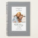 Our Ultimate Grey & White Engagement Wedding Planner features a beautiful chic border in trendy grey that includes an elegant petite white border. Calligraphy and script are charcoal grey on a white background. A modern template for date and year compliments the unique calligraphy design.[NOTE: The wedding date display as shown, uses the vertical bar or line which can be found above the \ on a keyboard or on your smart device with the special characters. You can also customise with any other character of your choice.] Customise with your favourite engagement photo & announce your big day on our coordinating Save The Date cards available in a separate listing. (For best placement of your picture, use a photo editing tool to centre and crop BEFORE uploading to the Zazzle website.)